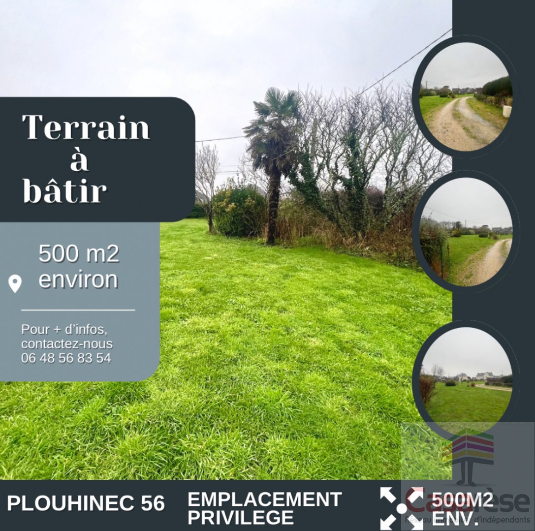 Venez découvrir ce magnifique terrain à bâtir de 500 m2. Situé Hors lotissement, Au Calme et libre de constructeur.Terrain issue d'une division parcellaire. Sa forme, sa configuration et son orientation permettent la réalisation de nombreux projets. La viabilisation est à pévoir. EMPLACEMENT PRIVILEGE Alexandra LERISSON LE MEUR - Tél : 06 48 56 83 54 - agent commercial en immobilier (EI). Immatriculé au registre spécial des agents commerciaux. Ville du greffe : LORIENT. RSAC N° 839 453 768 - Réseau Casarèse. Mandat N° 5344. D'autres biens sur www casarese com ! Les informations sur les risques auxquels ce bien est exposé sont disponibles sur le site Géorisques : www.georisques.gouv.fr. Honoraires : 7,50 % TTC inclus charge acquéreur (200 000 hors honoraires).